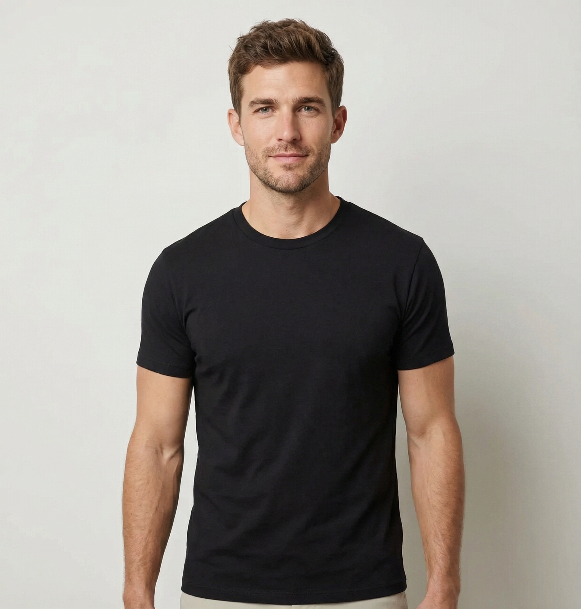 Discover our premium crew neck T-shirt, perfectly combining comfort and style. Its contemporary athletic cut naturally shapes your arms, shoulders, and torso for a silhouette that radiates confidence.